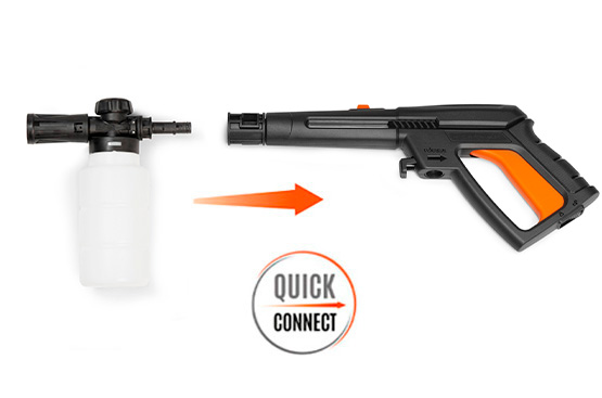 Система Quick Connect позволяет быстро заменить струйную трубку на пеногенератор для нанесения пены без использования дополнительных инструментов.