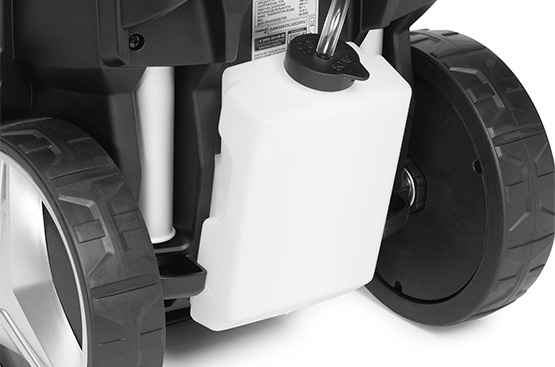 Емкость для моющих средств встроена в корпус мойки, благодаря чему нет необходимости останавливать работу для смены насадок.